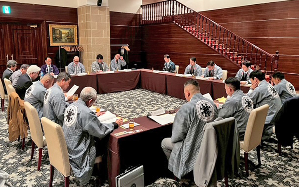 3月18日、熊谷商工会館にて総代長懇談会が開催されました。本会は、年番町である筑波区と、祭りに参加する12町区の総代長(各町内の代表者)が一堂に会する初めての顔合わせの場となります。